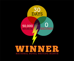 I managed to play a serious game of catch up Wednesday when I met my word count goal after being 2k words behind. Then tonight, because I’d just written over 3600 words the day before, I figured that another 3300 to cross that goal line was nothing. A one-hour word war helped significantly and the promise of actually crossing the goal line and getting all of those things I mentioned above (not to mention my dog living through November) was enough to get me through. I now have a triumphantly purple bar with the word “WINNER!” on it, a kick-ass badge- check it out, on your right, it’s so pretty!- and I will be ordering my awesome winner’s t-shirt (because even though this is my fourth year winning, I’ve never bought a winner’s t-shirt before).